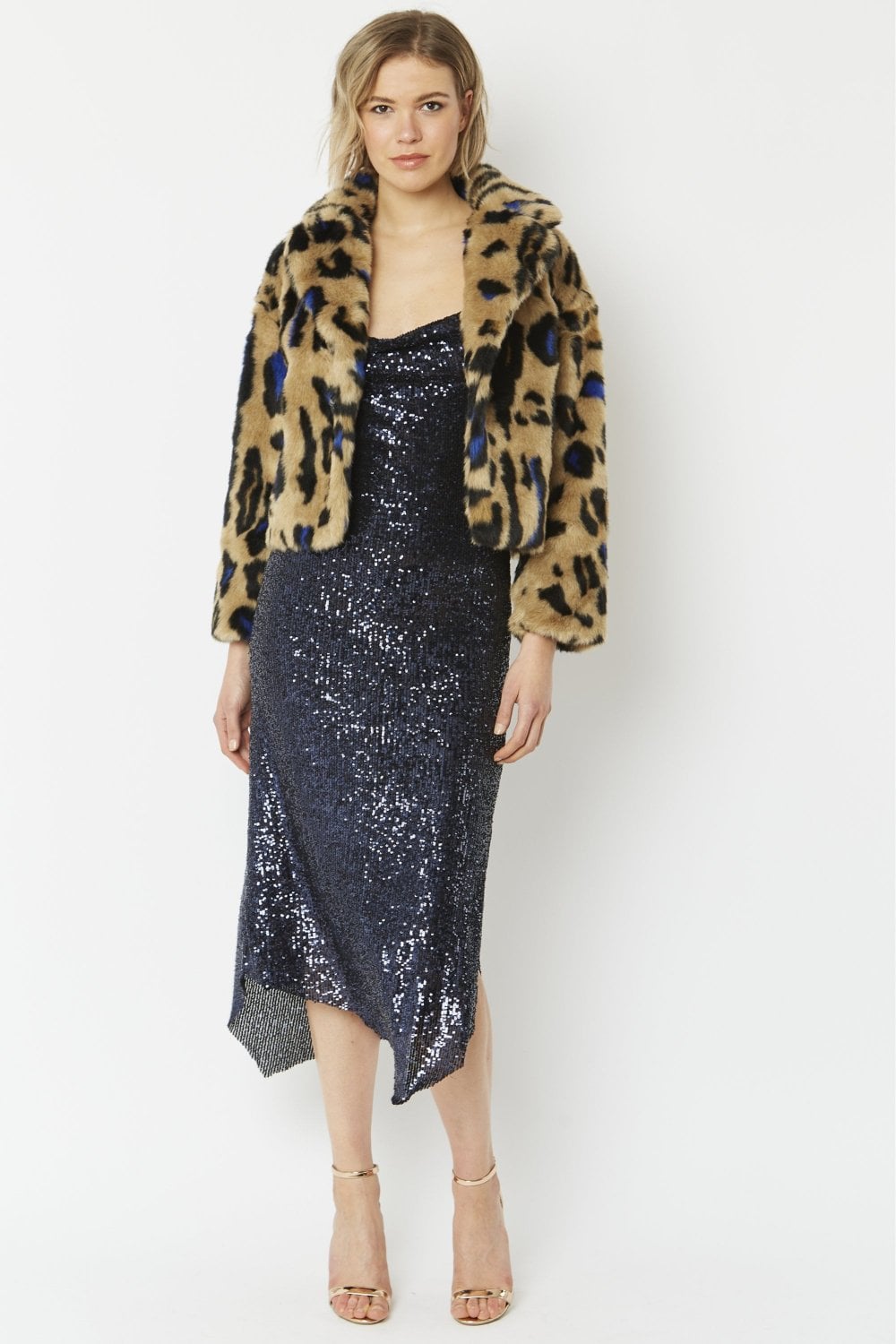 A versatile pice, this cropped faux fur jacket with contrasting colours incorporated through the leopard print, is a bold piece that adds both warmth and style to your wardrobe.