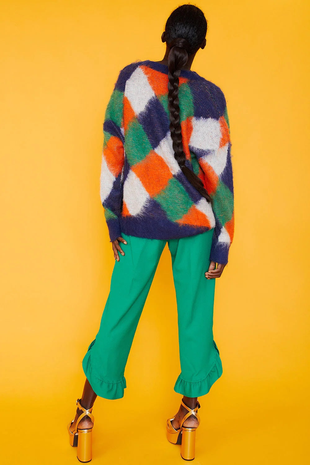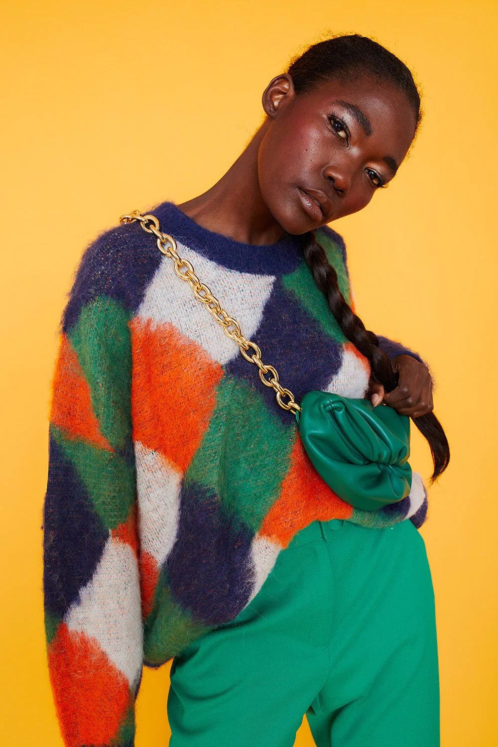 Be a diamond in the rough with this ultra-luxurious cashmere navy jumper! With its diamond design and navy color, this cozy jumper is sure to make a statement and keep you looking and feeling good. Step up your style and look smart while staying warm - it's a win-win!