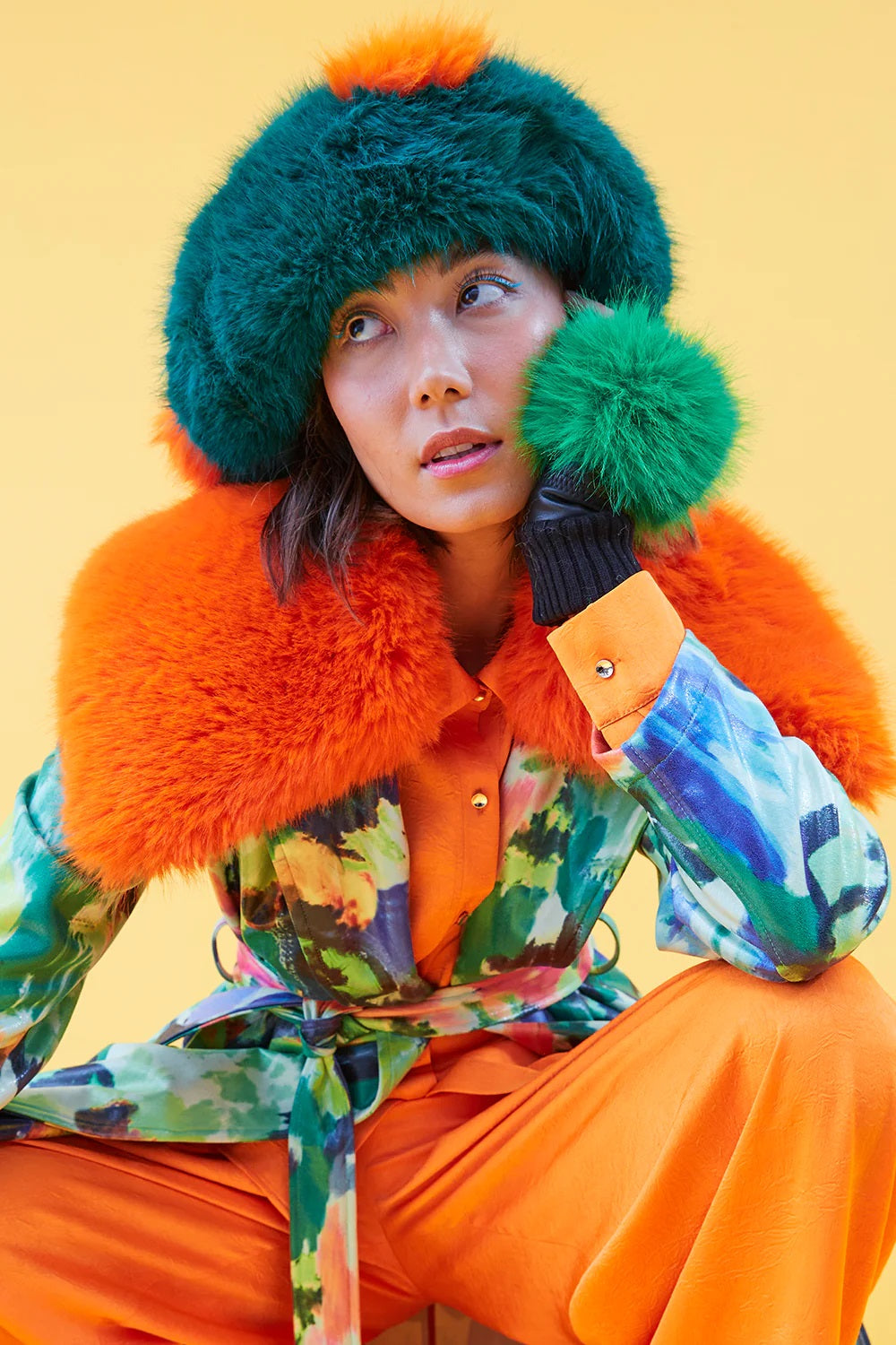 Keep your fingers toasty and in style with these unique Green Faux Fur Fingerless Gloves! With their vivid green faux fur, you'll be the talk of the town – not to mention all the extra texting speed you'll gain with your digits free to type! (Because mittens definitely aren't in this year.)