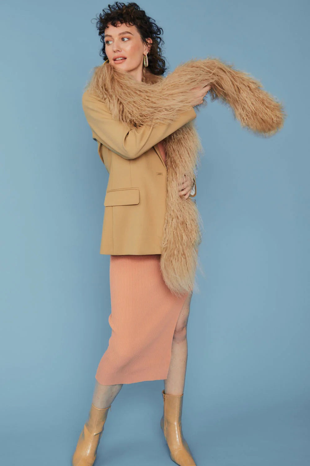 Mocha Long Mongolian Fur Scarf