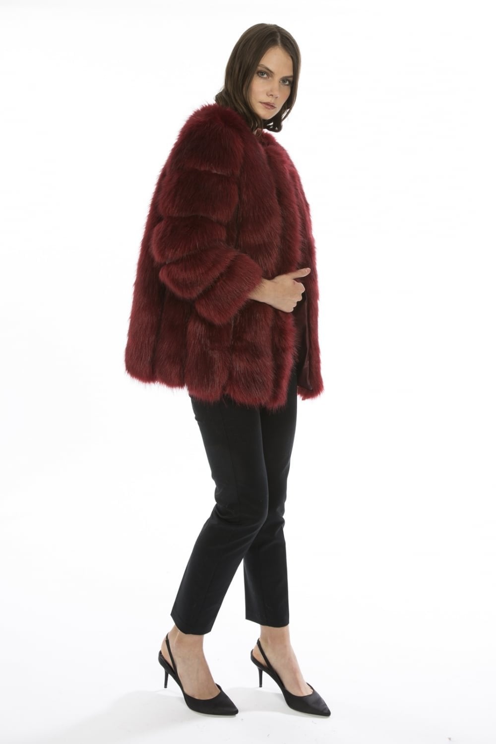 Stay warm and look stylish in this red faux fur coat. Complete with cropped sleeves, a flattering neckline, and the softness of faux fur, you will be rockin’ any situation! Perfect for keeping cozy while at home, or turning heads on a night out!